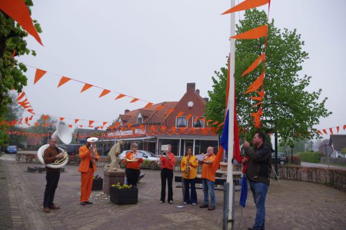 Geweldige omstandigheden gisteren tijdens Koningsdag in Hoenderloo. Omdat men nog niet terecht kon in het Muziekbos was uitgeweken naar het terrrein rond ’t Dorpshuus. Dat voldeed prima; OCH had er een mooie feestlokatie van gemaakt.